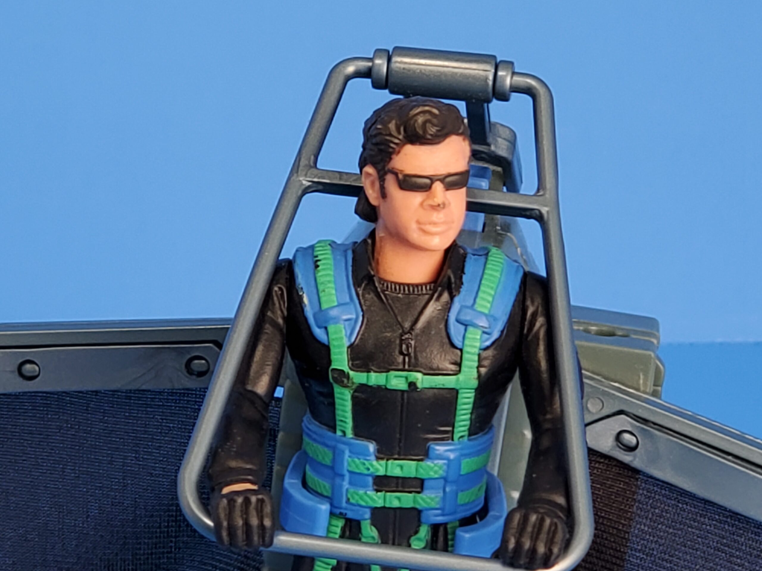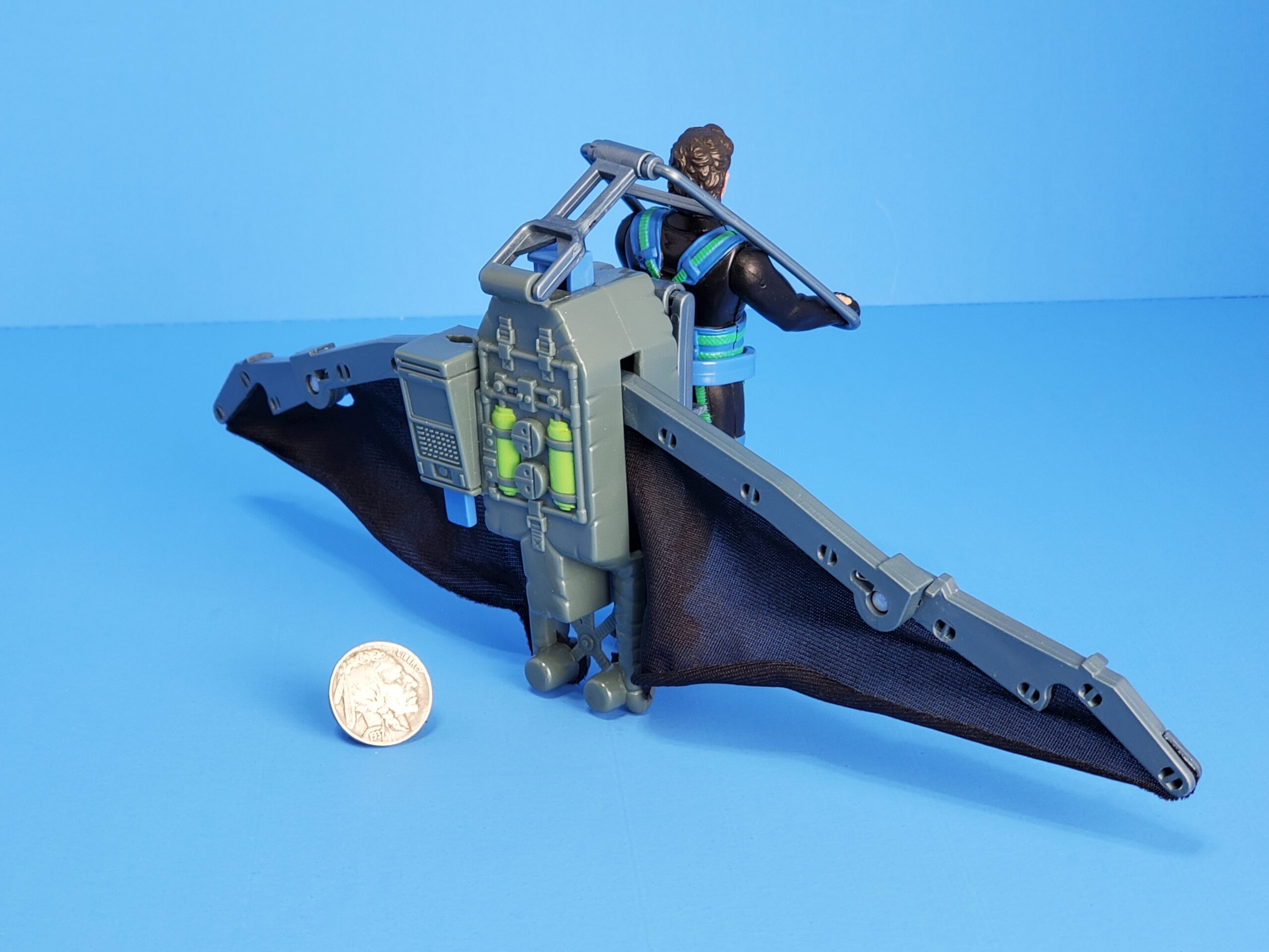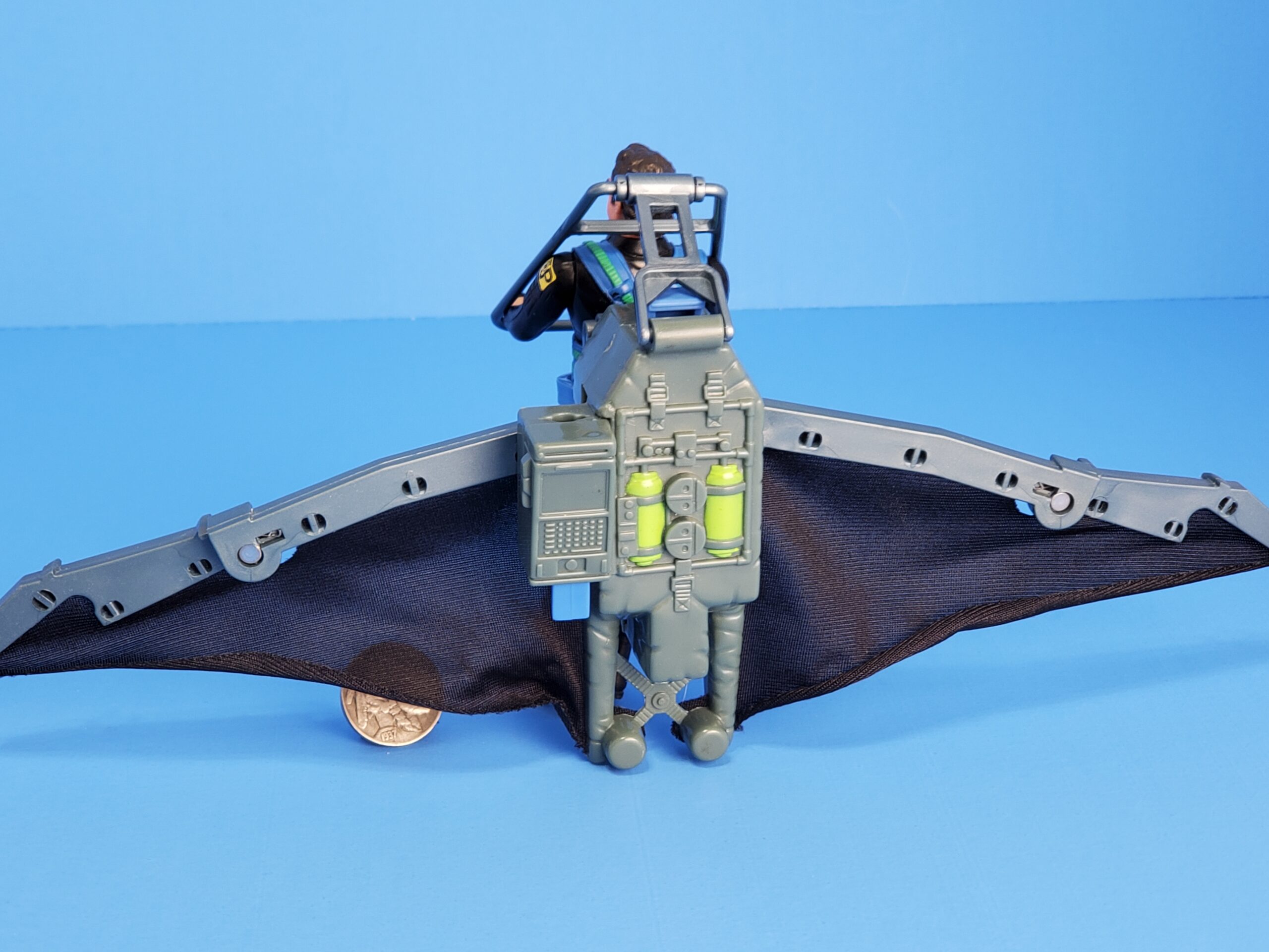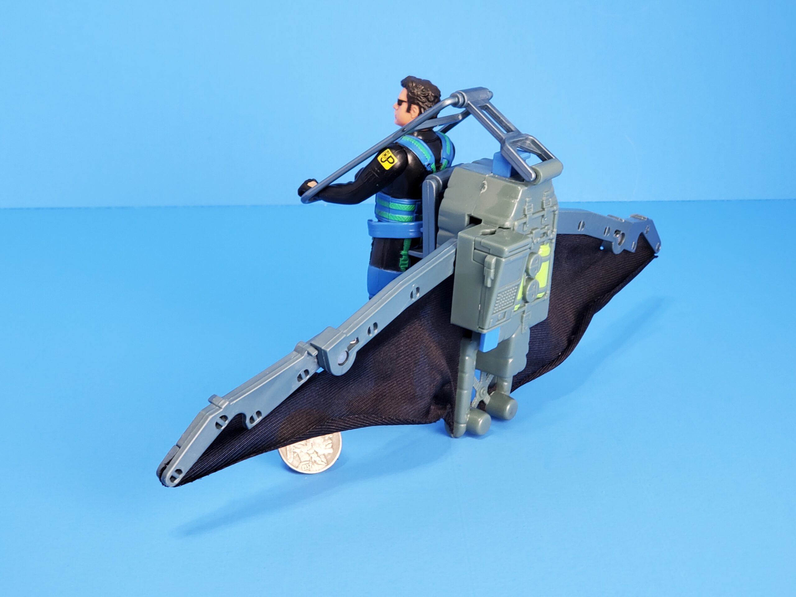 Action feature: Glider wings burst open! Launch rocket for aerial dogfight! Includes exclusive Ian Malcom action figure. No missile.