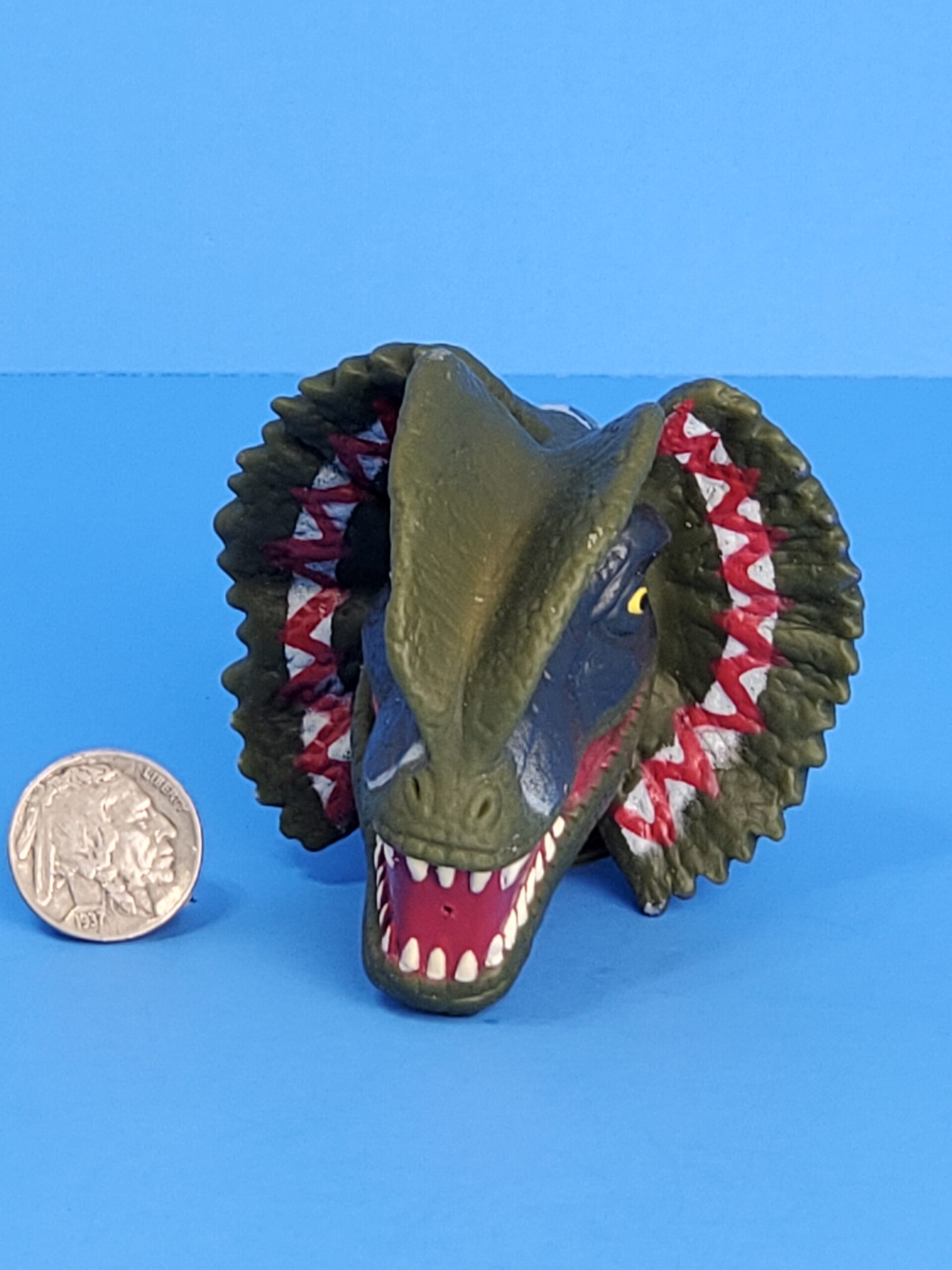 Made by Amblin. Jurassic Park Lost World Dilophosaurus Bubble Bath Squirt Head.
