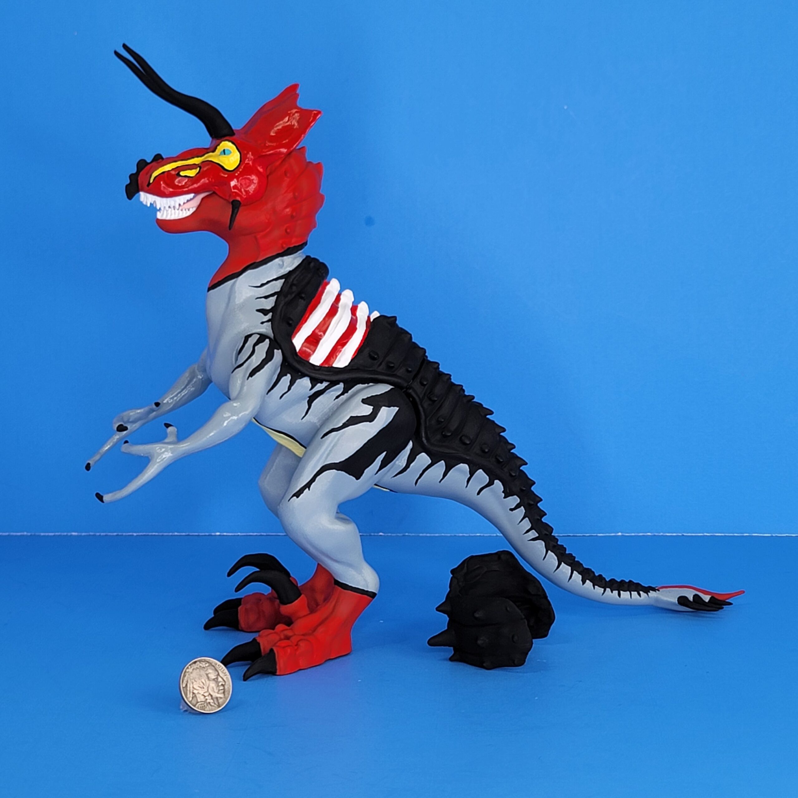 Points of interest– Genetic mix between a T-Rex, a Triceratops, a Velociraptor, an Ankylosaurus, and a Stegosaurus or a Kentrosaurus. |